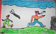 הילדות מסדנת היצירה של מרים צרפתי ציירו את מה שהן חשות כשנשמעת הכריזה "צבע אדום" המודיעה
